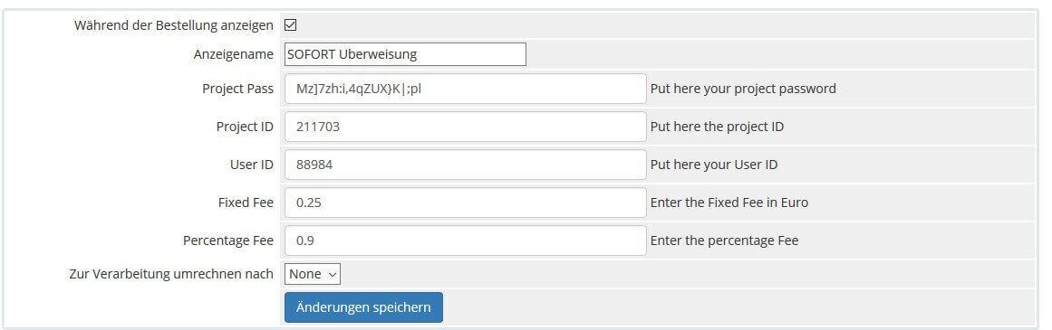 Hinweis: Dieser Paymentgateway erfordert ein aktives Classic Api Konto bei SOFORT.